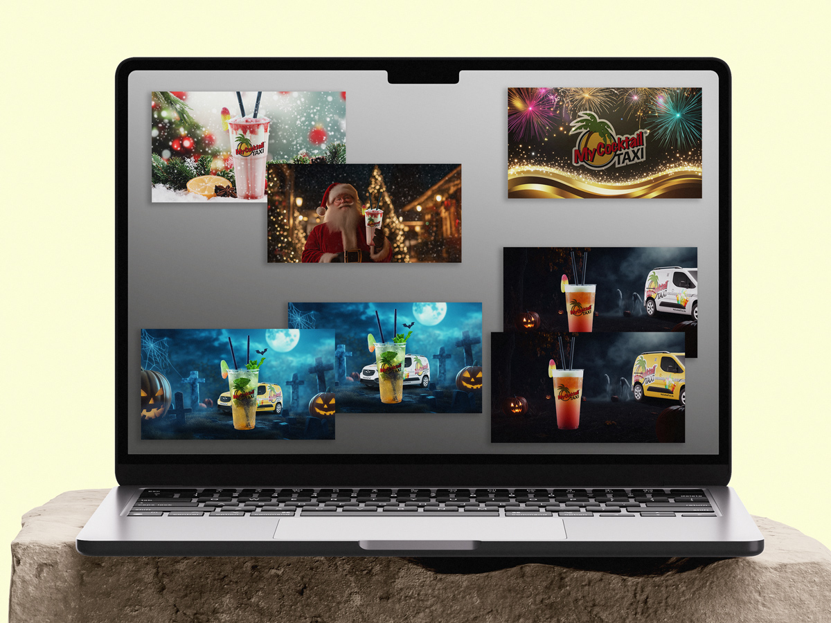 Die digitalen Banner von MyCocktailTaxi schaffen eine einheitliche & markenstarke Online-Präsenz. Sie steigern die Sichtbarkeit der Marke, unterstützen saisonale Marketingkampagnen & optimieren das Kundenerlebnis auf digitalen Plattformen.